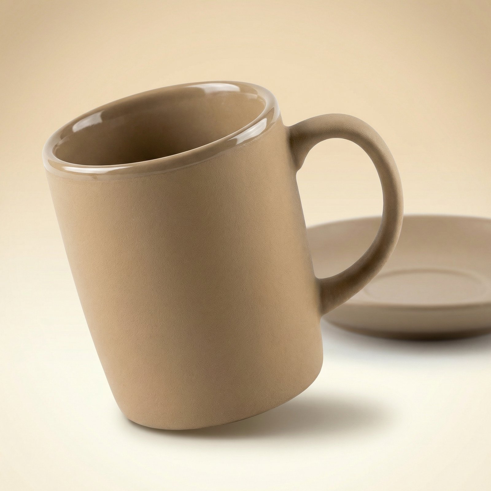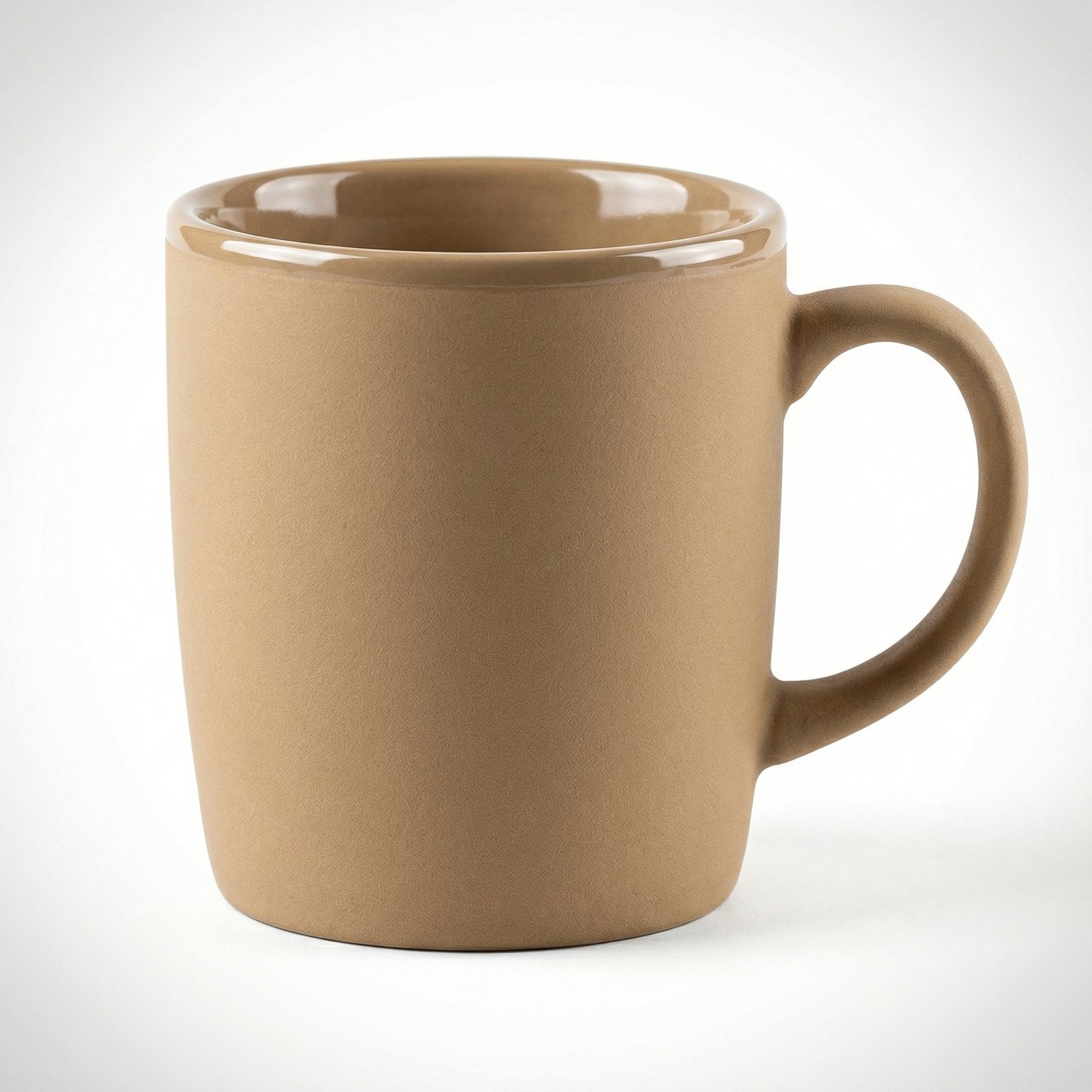Minimalist porcelain mug with a matte exterior and glossy interior.